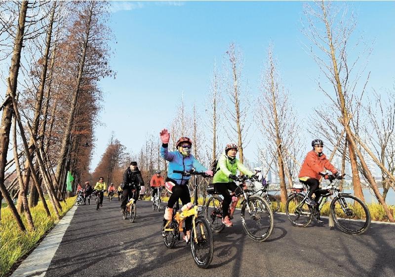 圖為:1月初,人們在武漢東湖綠道上享受慢生活。 (湖北日報全媒記者 張朋 攝)