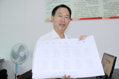 王義富根據(jù)自己多年的經(jīng)驗,將黨員爭創(chuàng)的信念星、致富星、道德星、信用星、法紀星、計生星、義務(wù)星、新風星、科教星、生態(tài)星這十顆星,運用通俗易懂的語言編成五句子花鼓船歌,容易記憶,更容易理解,在廣大黨員中傳唱,收到良好效果。