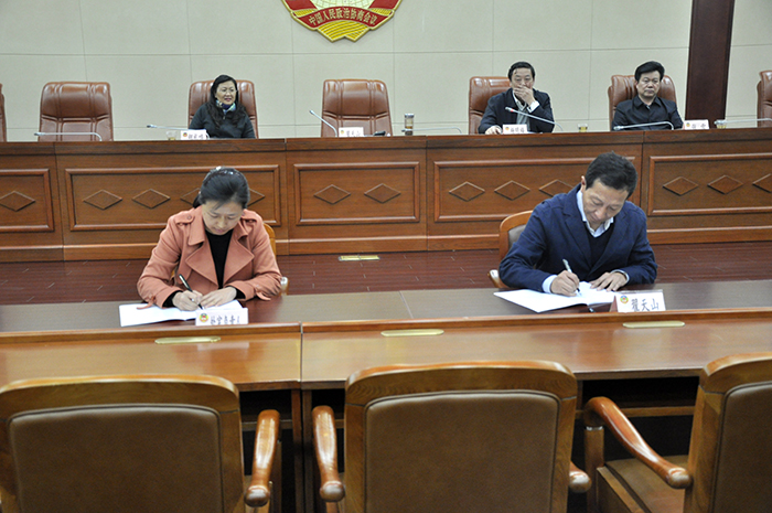 翟天山秘書長與處室負(fù)責(zé)人簽訂工作目標(biāo)管理責(zé)任書。