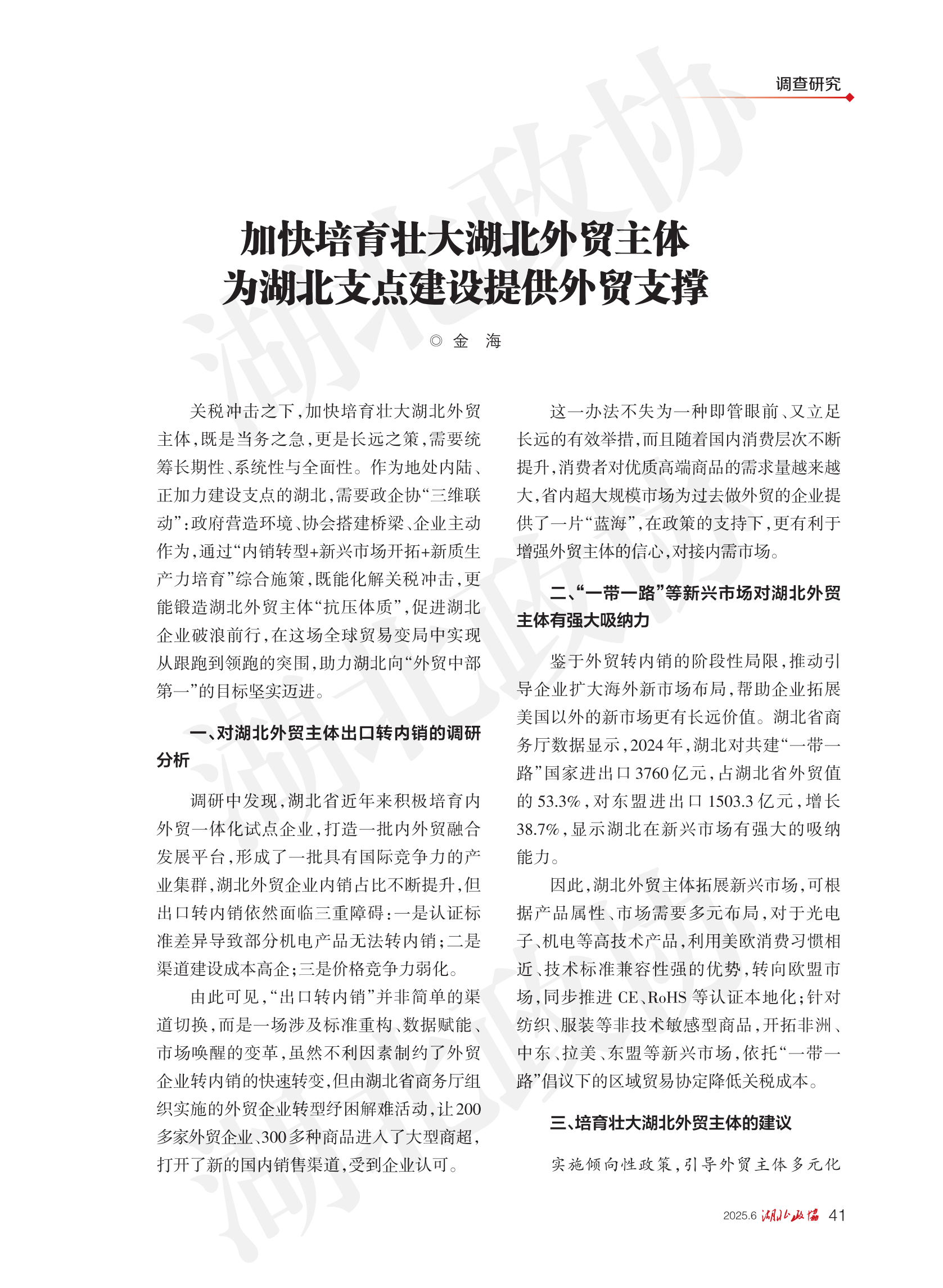 《湖北政協(xié)》2025年第6期