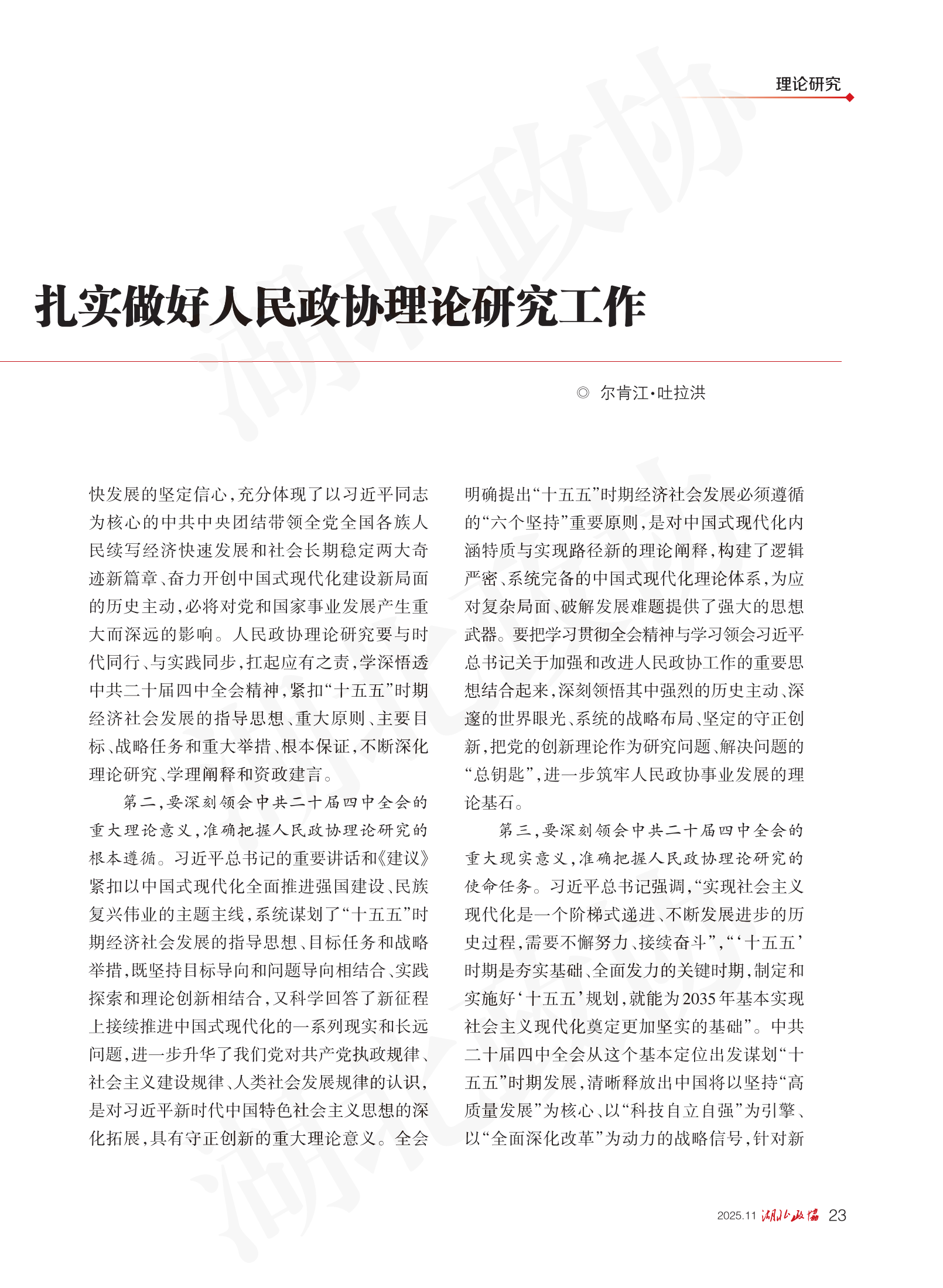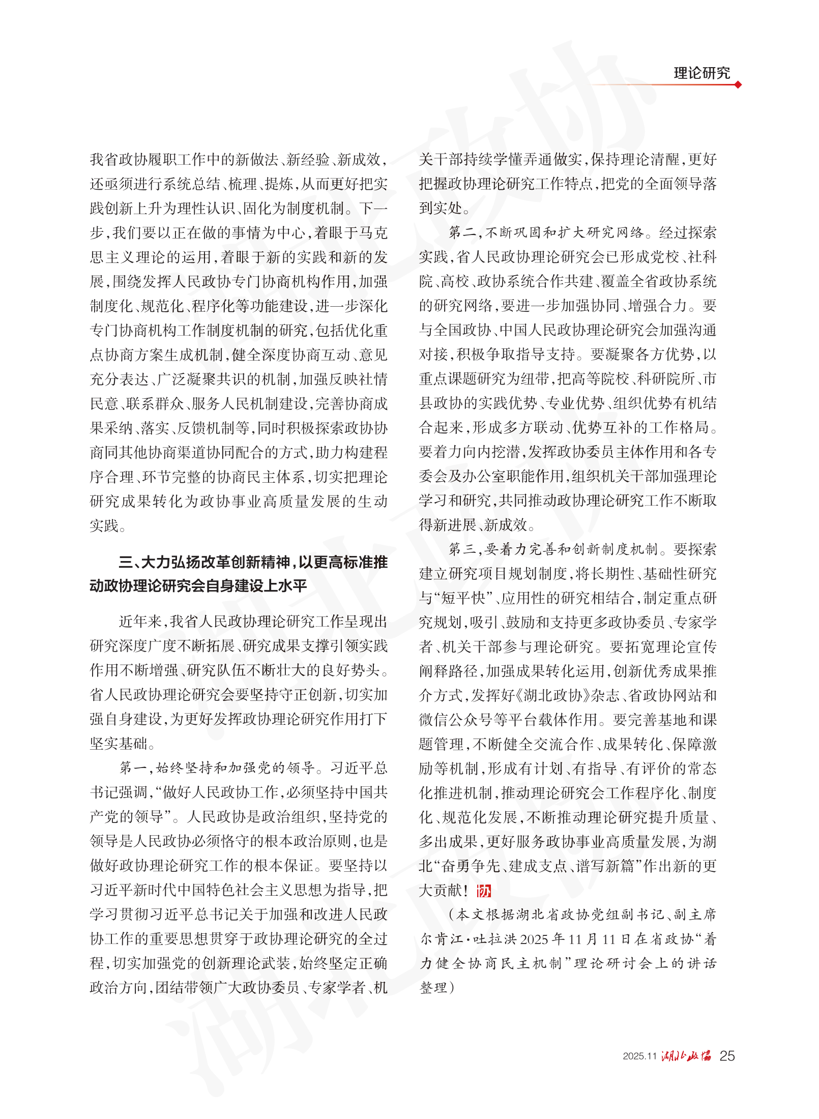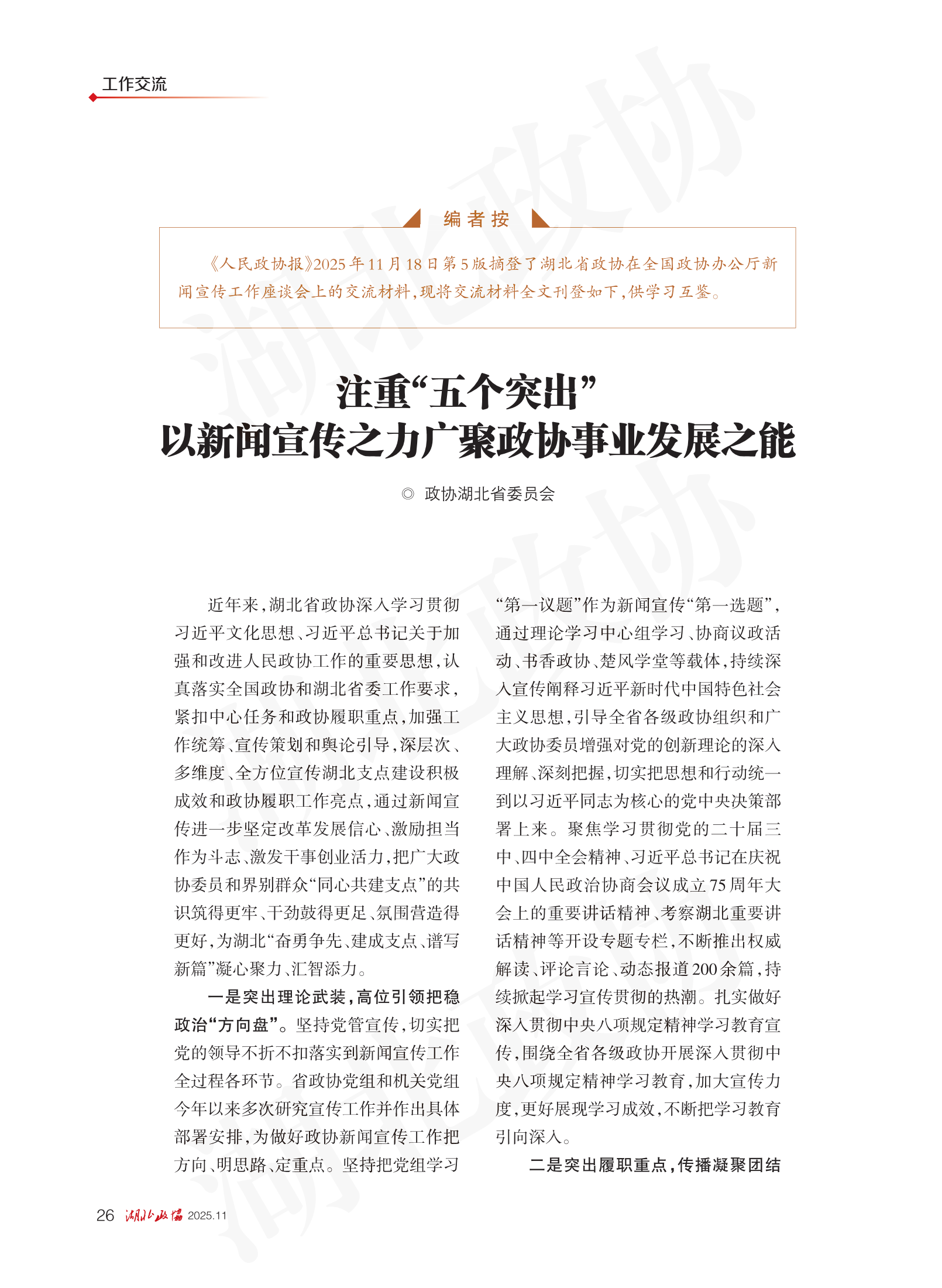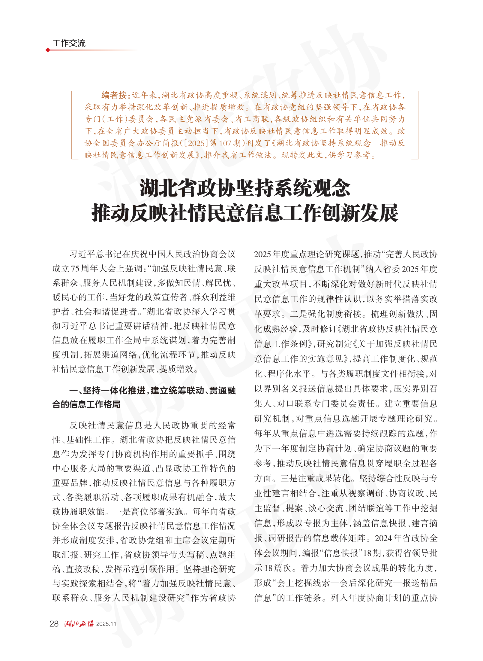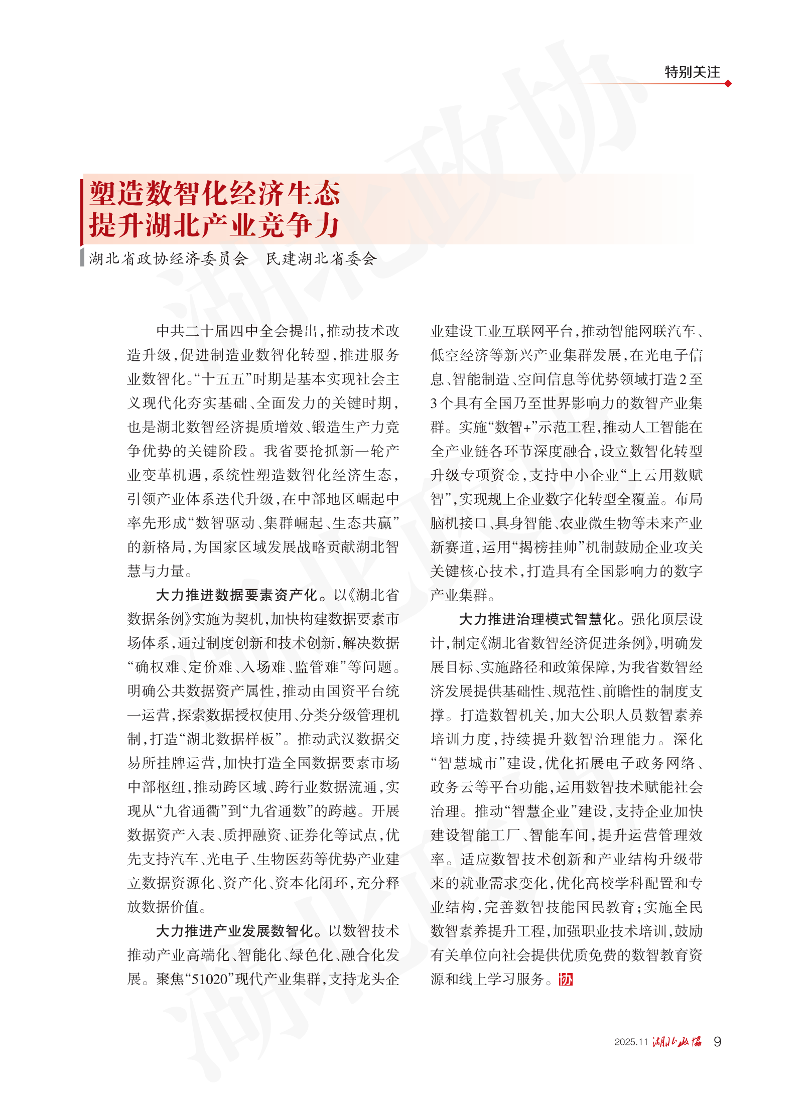 《湖北政協(xié)》2025年第11期